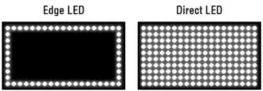 - Ici, les LED sont placées directement derrière le panneau d'affichage. Cela permet un meilleur contrôle de la luminosité et des contrastes, car chaque zone peut être éclairé indépendamment. Ce type d'éclairage est souvent utilisé dans les écrans de haute qualité.